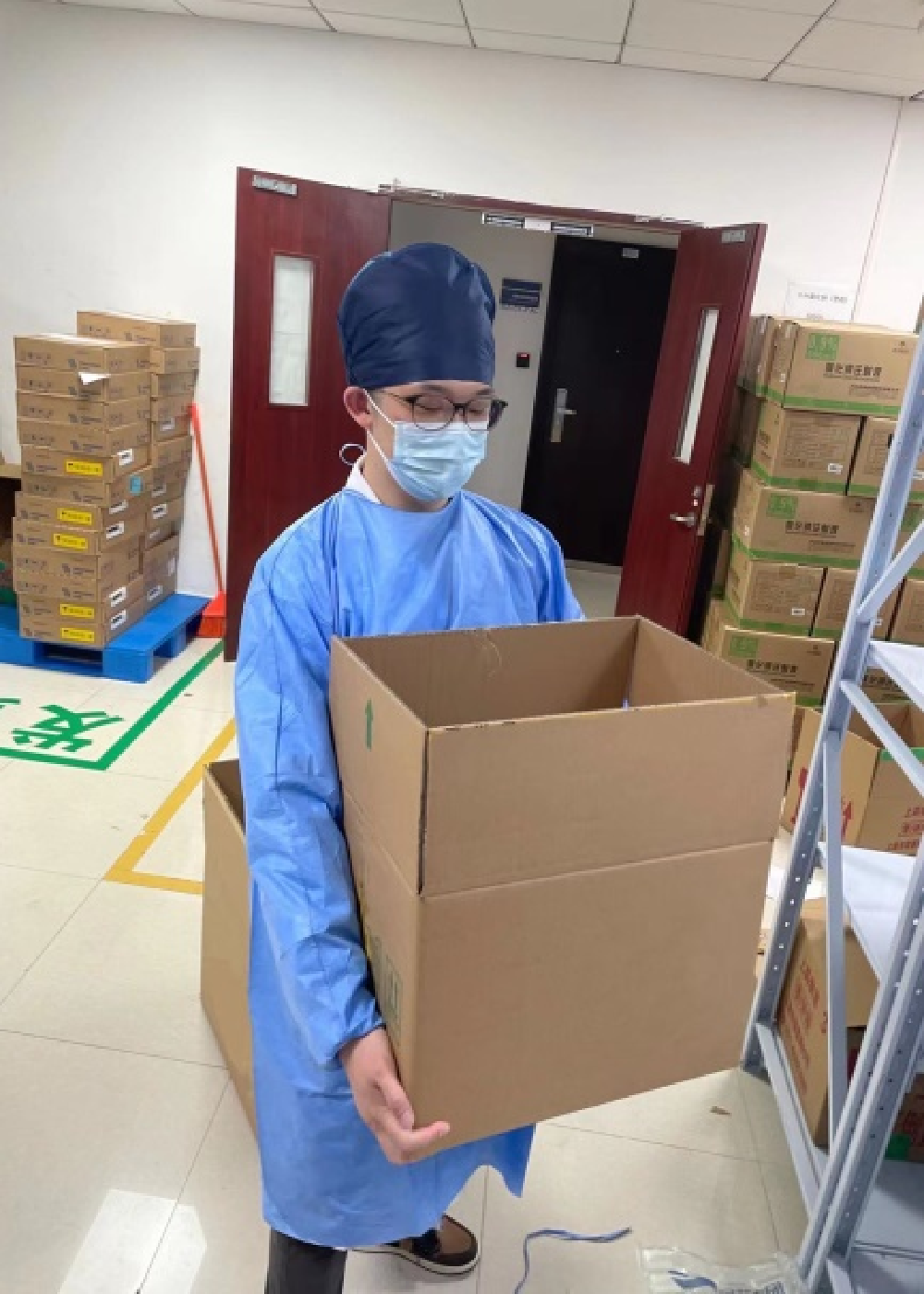 為強化疫情期間針對醫(yī)療機構的各項醫(yī)療防護物資保供,在不占用醫(yī)護住宿條件的情況下,上藥醫(yī)療器械SPD運營總部堅持部署最大限度的人數配置,保證各醫(yī)院的SPD服務正常運行,80多名SPD員工奮戰(zhàn)在醫(yī)院一線,隨時響應醫(yī)院的需求。SPD運營經理顧寅韜所在的醫(yī)院共有4人,團隊每次搬運物資時,都要經過從地下車庫到地面的一條長長的傾斜坡道。一個多月的來回搬運,幾乎磨平了員工的舊鞋。四月,嘉定某醫(yī)院即將轉型為新冠肺炎定點治療醫(yī)院,現場SPD人員告急,只剩下了1位員工,但病患的救治一刻也不能耽擱!剛結束金山公衛(wèi)支援任務的李猛迅速報名了支援工作。他也基于醫(yī)院的實際情況,分享了援助公衛(wèi)中心時學習的院感經驗,向醫(yī)院提出了多項合理化建議,得到了院方的好評。