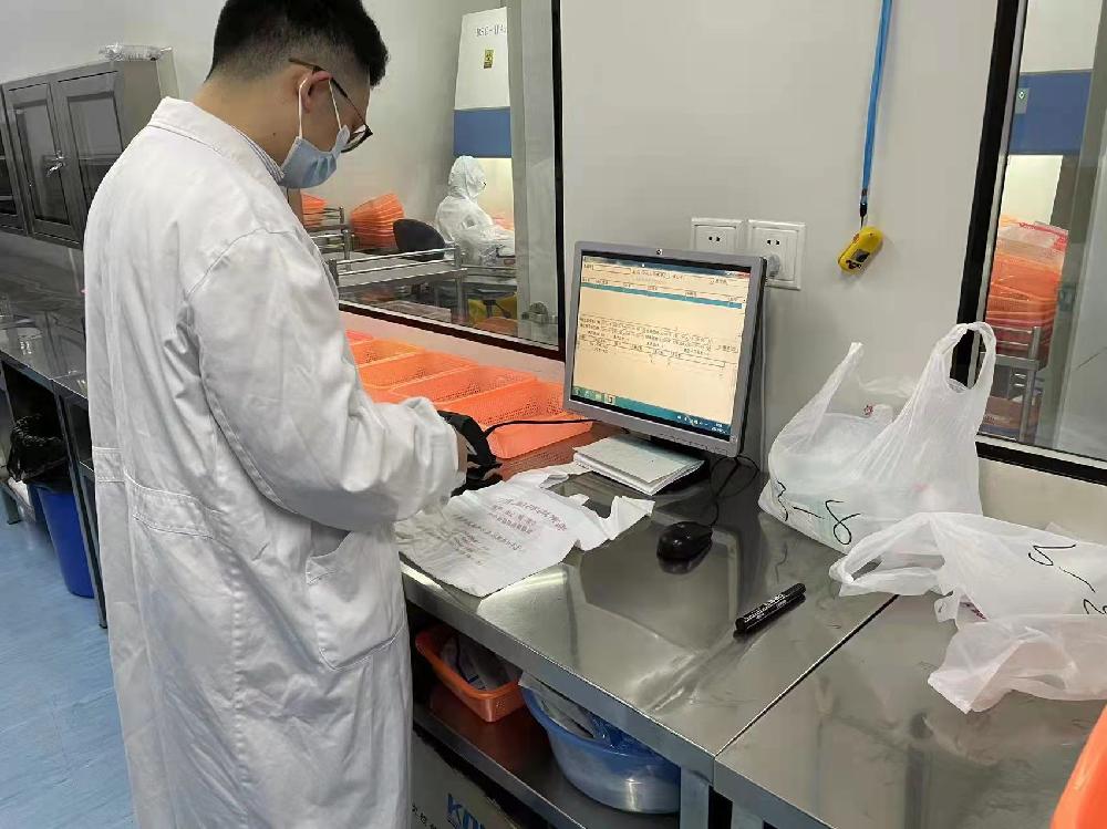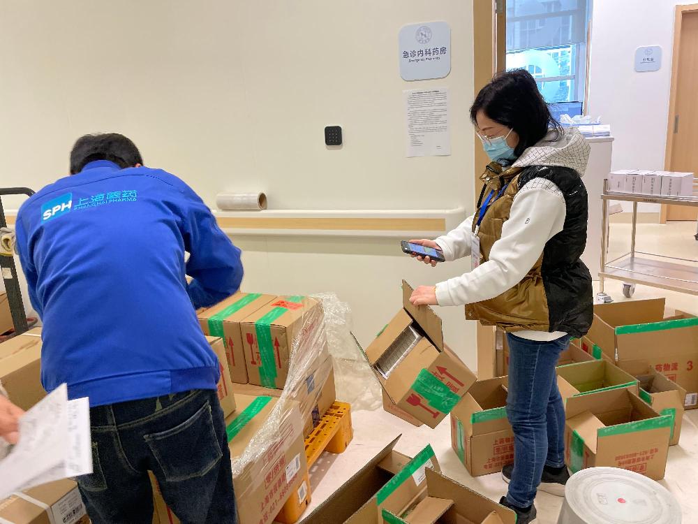 上藥醫(yī)療器械黨總支劉唯清、施曉攜手SPD團隊,一同擔負起全院約1000張床位和醫(yī)務人員的保供需求,從上午9點到晚上10點,口罩、防護服、消毒酒精……前方缺什么,他們便第一時間補上。