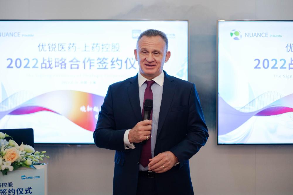 優(yōu)銳醫(yī)藥CEO Mark在致辭中回顧了與上藥控股良好的合作經歷,對雙方的合作成果給予充分肯定,對上藥控股在疫情期間守護民眾健康和保障醫(yī)療供應鏈穩(wěn)定做出的貢獻表示高度贊賞。上藥控股作為醫(yī)藥供應鏈領域的頭部企業(yè),具有很多獨特的作用與優(yōu)勢。千里之行,始于足下。展望未來,Mark希望雙方進一步發(fā)揮各自優(yōu)勢,順勢而為、創(chuàng)新發(fā)展,在緊密合作之下實現共同成長、互利共贏。