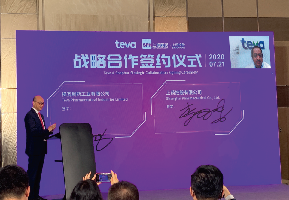 由于全球疫情的影響,本次簽約采用線上線下結(jié)合的創(chuàng)新方式,不僅在線上匯集了來自中國(guó)香港、泰國(guó)以及以色列的Teva伙伴們,梯瓦大中華區(qū)總經(jīng)理Larry Merizalde與在現(xiàn)場(chǎng)參會(huì)的上海醫(yī)藥執(zhí)行董事、副總裁,上藥控股總經(jīng)理李永忠更是通過科技創(chuàng)新手段同時(shí)在戰(zhàn)略簽約板上簽名,讓分布在全球的伙伴們共同見證!
